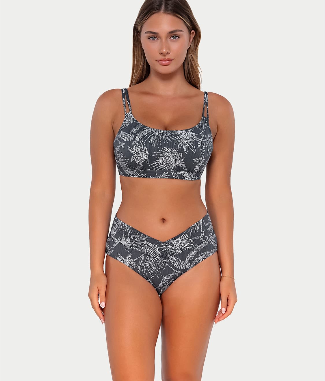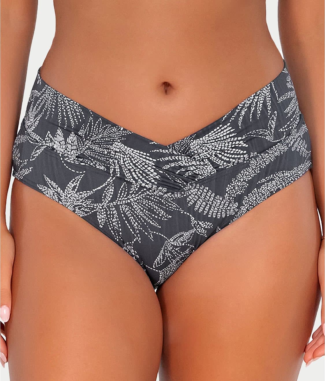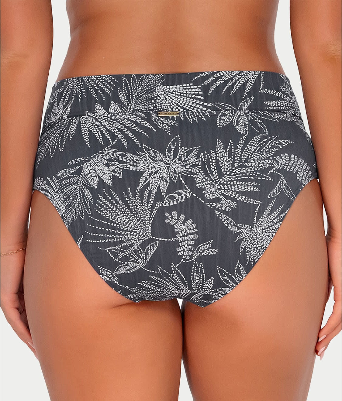 - Head to the pool in this chic printed bikini bottom