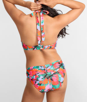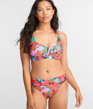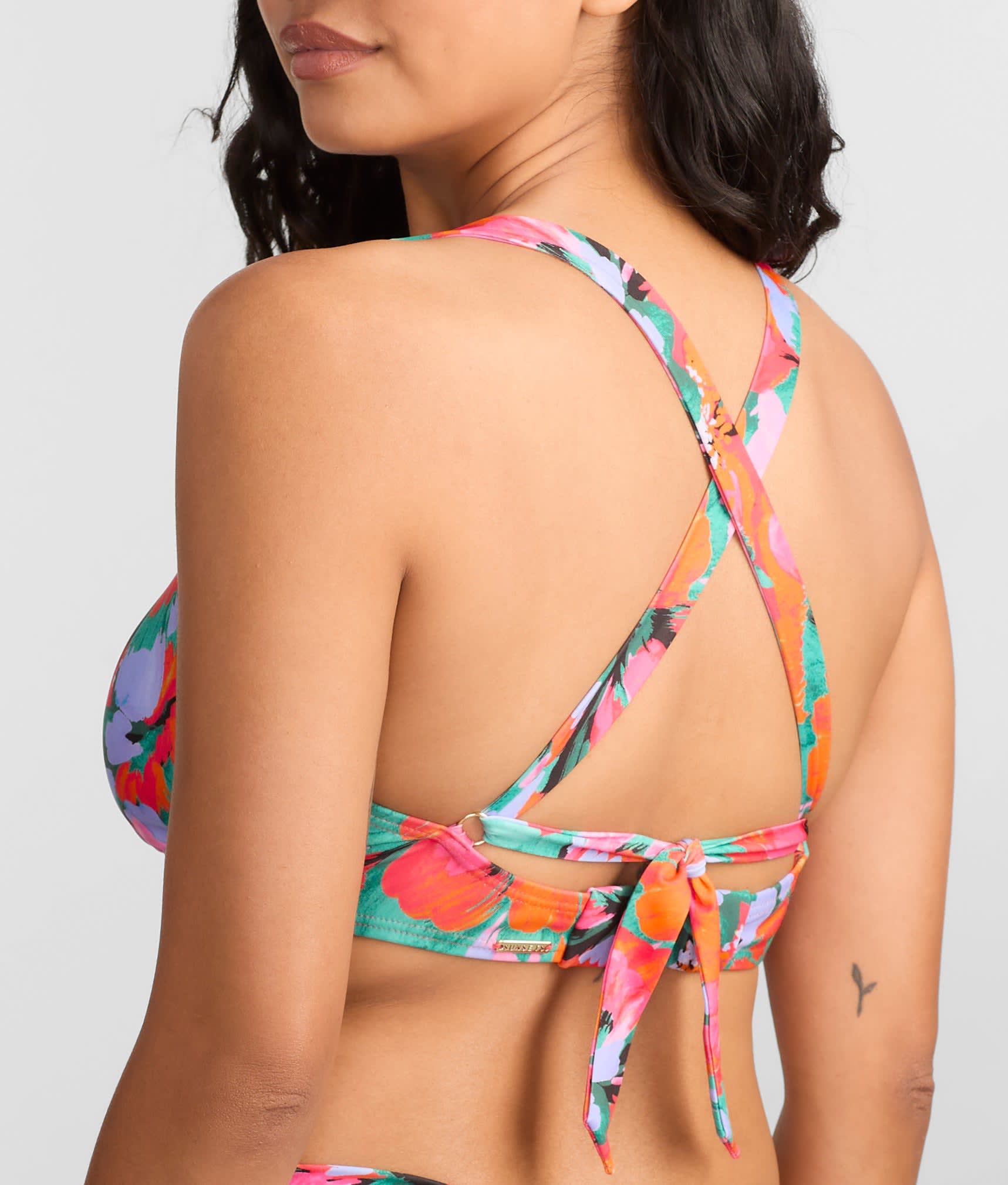 - Feel playful at the pool in this printed bikini top with a V-wire
