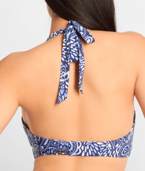 • Feel playful at the pool in this printed bikini top with a V-wire