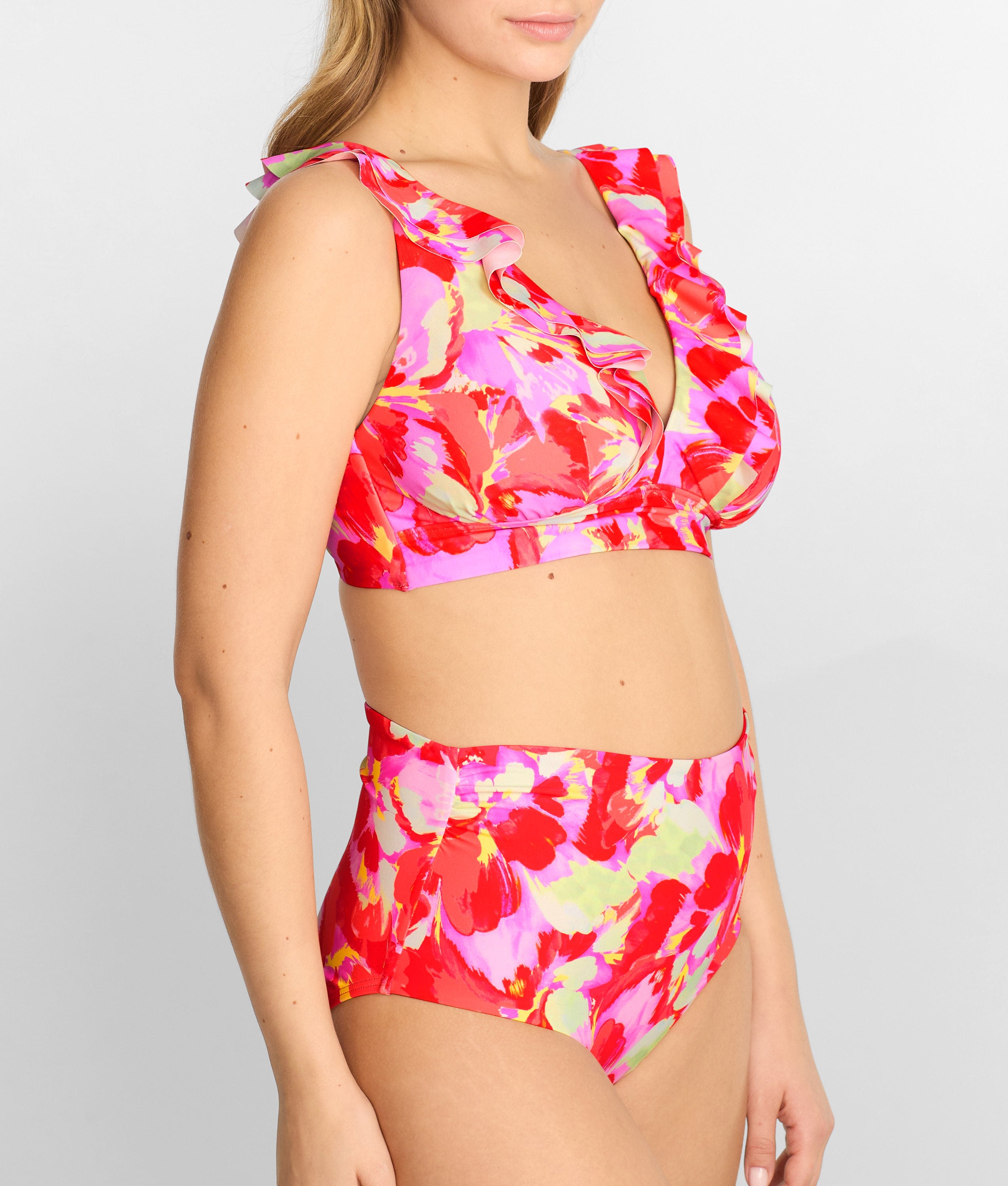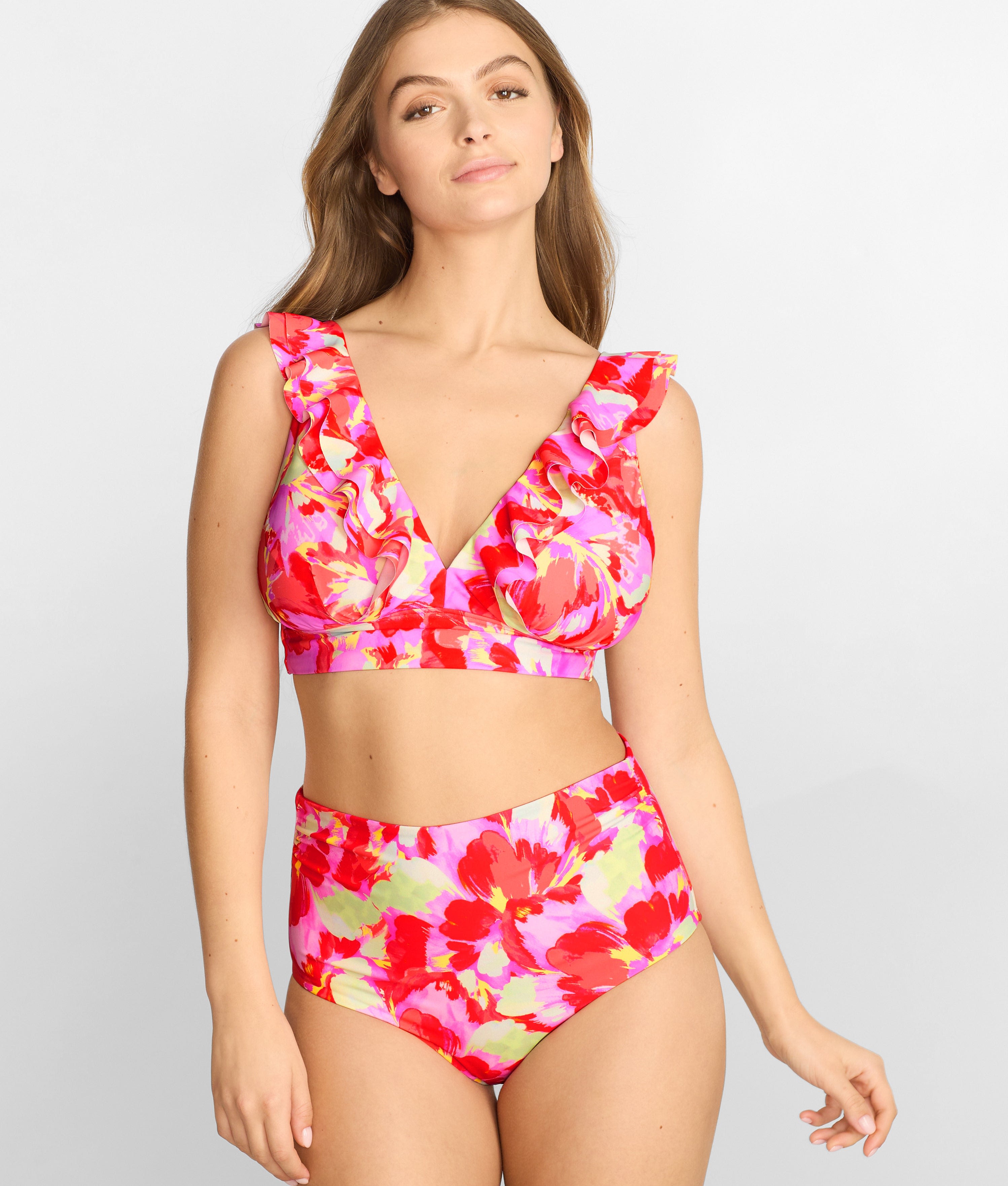Printed Willa Ruffle Wire-Free Bikini Top Color