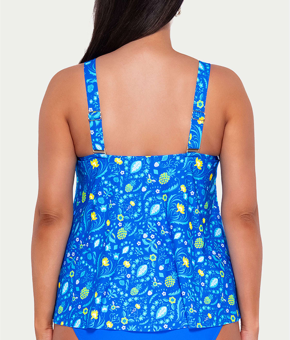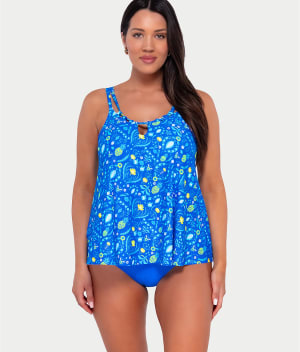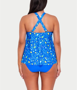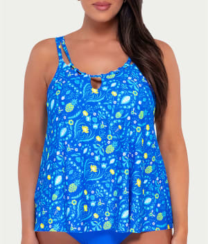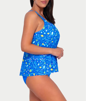 • Stroll the sand in this printed high-neck tankini top