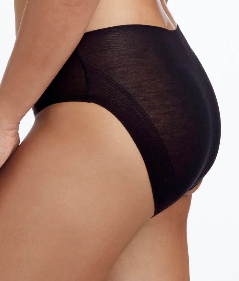 - Seamless rear provides moderate, "cheeky" rear coverage