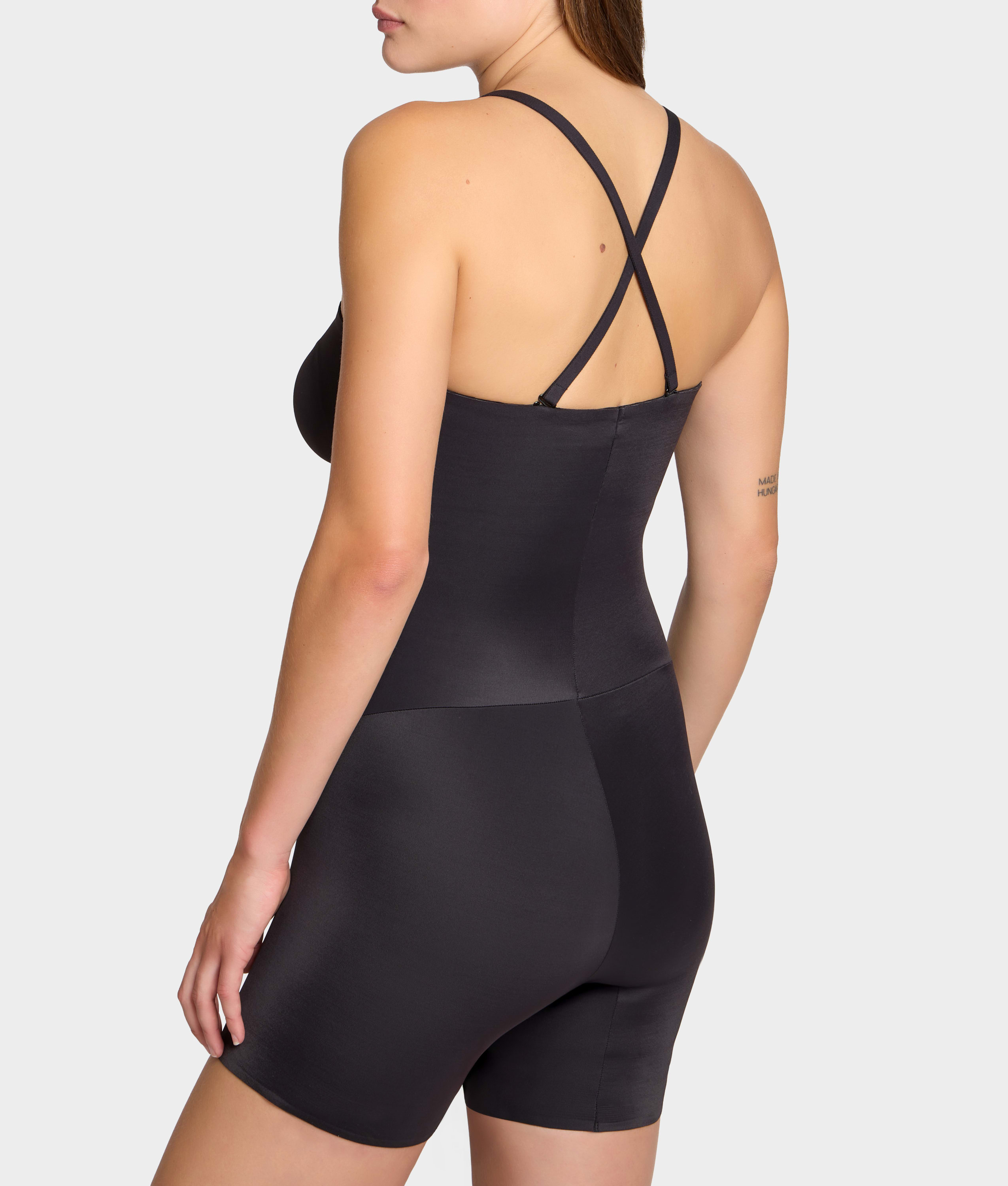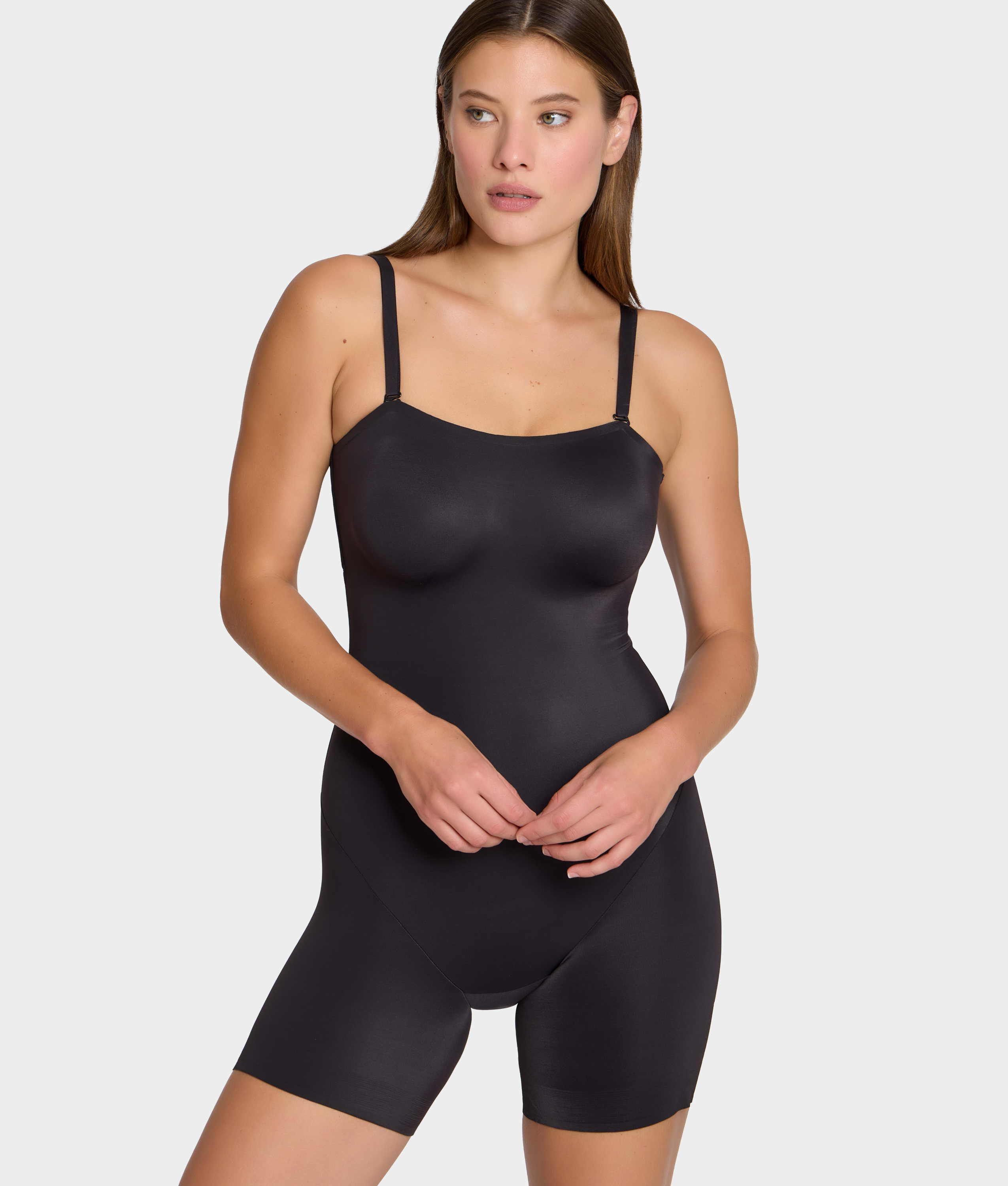 - Show off your silhouette in this one-piece, all-over strapless body shaper