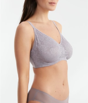 • Mesh-lined sheer floral lace cups lay flat under clothes