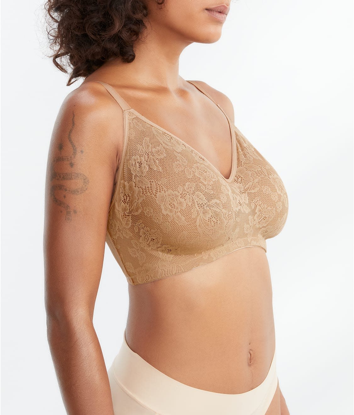 - Mesh-lined sheer floral lace cups lay flat under clothes