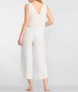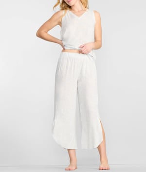 • Elastic waistband on wide leg, relaxed fit cropped pants