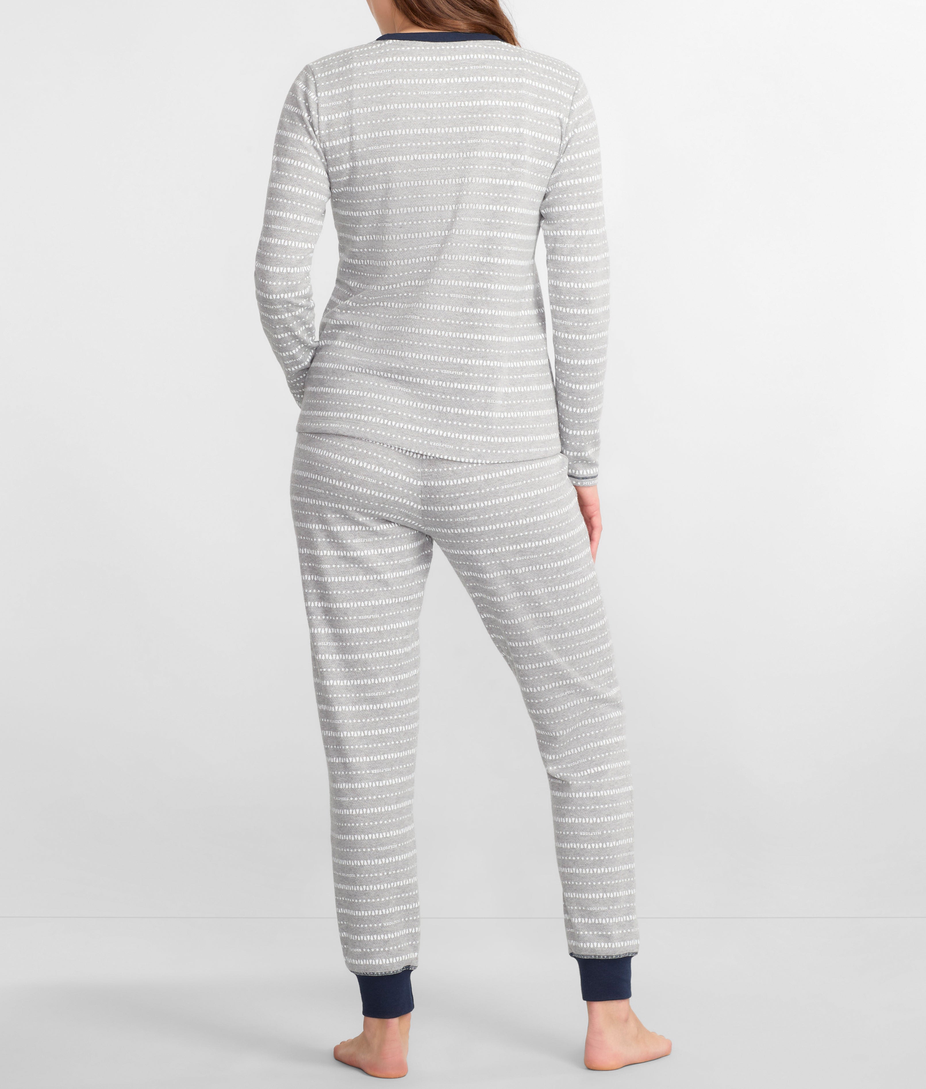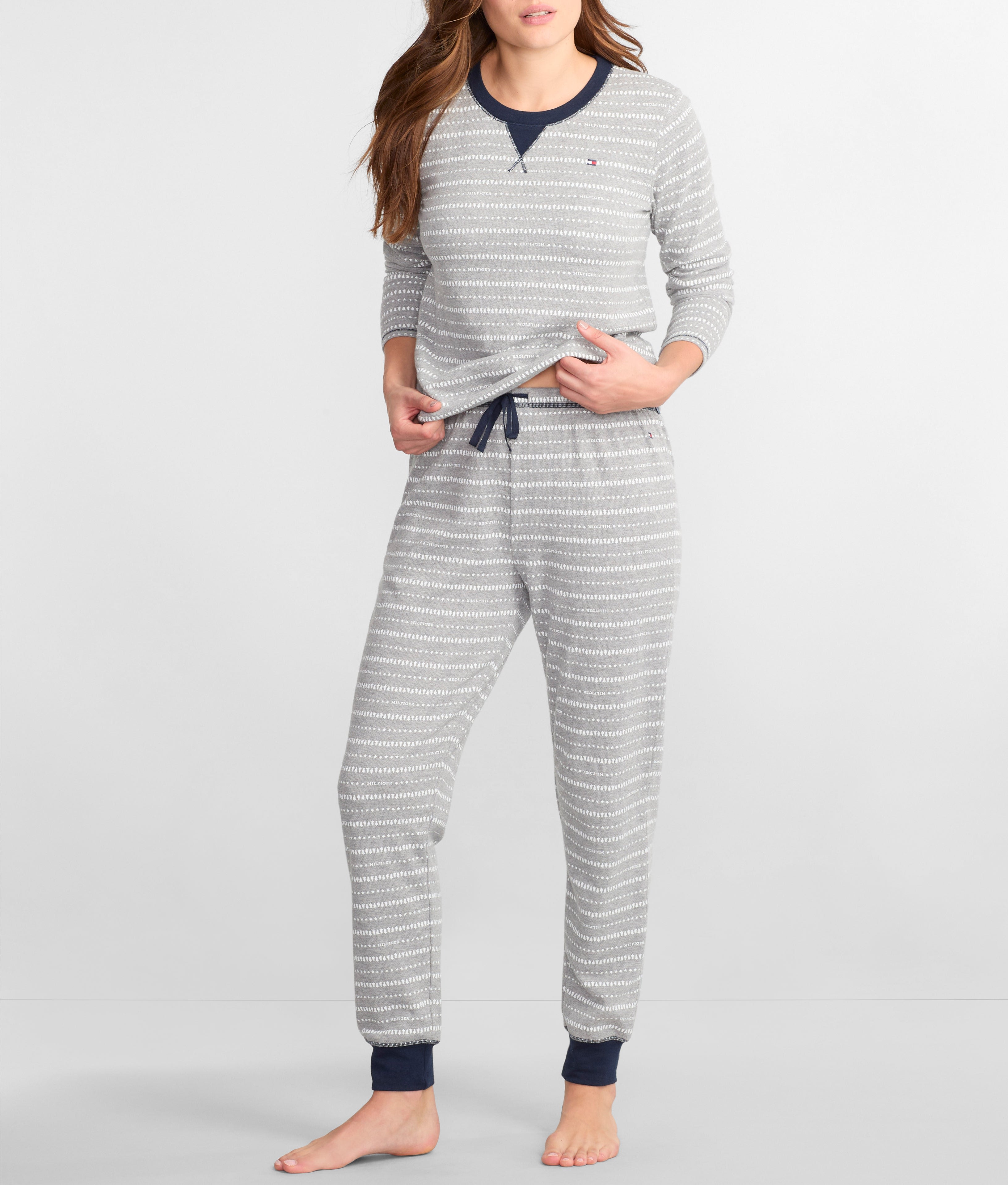 - Get cozy in this soft printed thermal knit pajama set