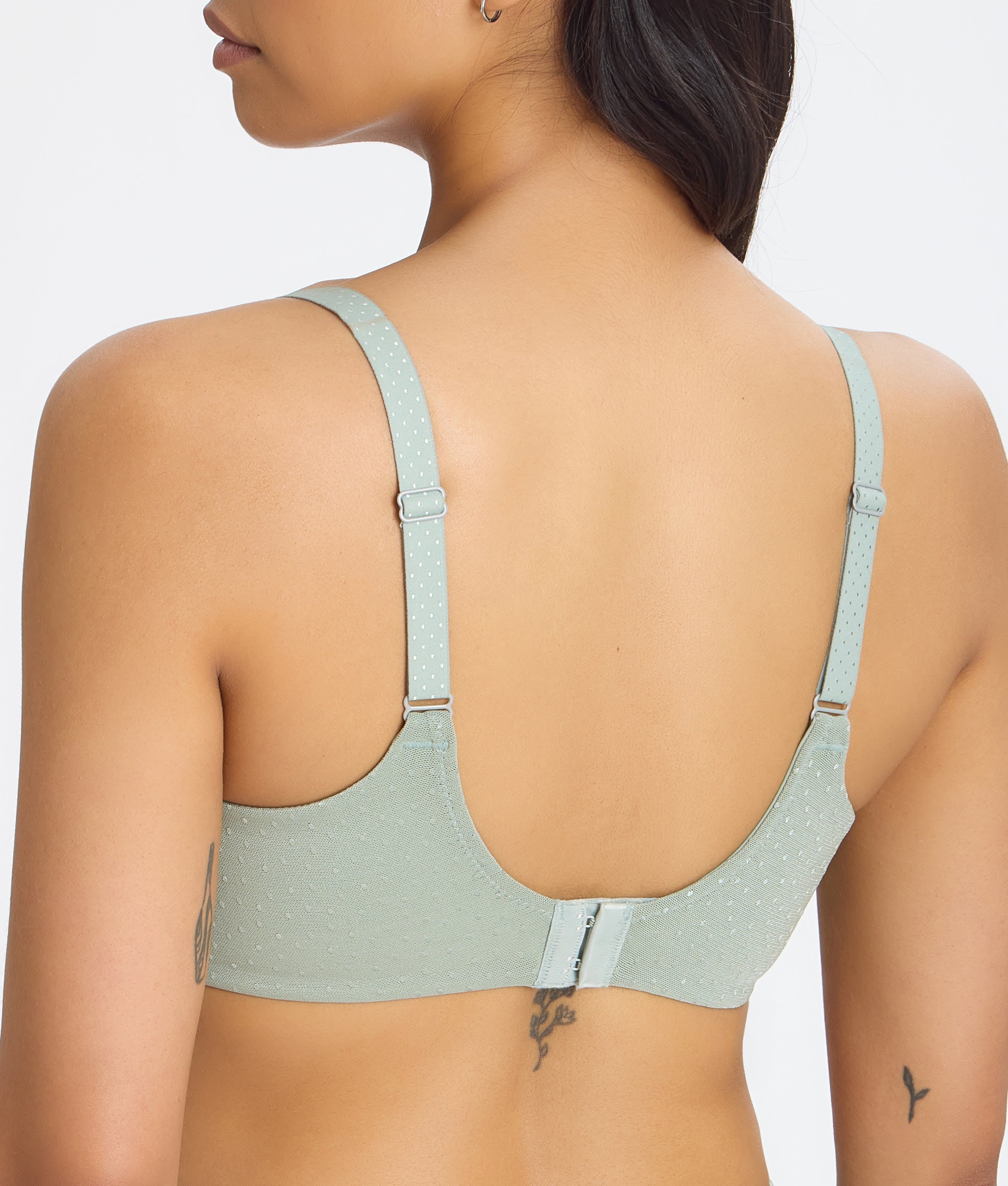 • Feel polished in this pretty dot jacquard seamless bra