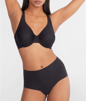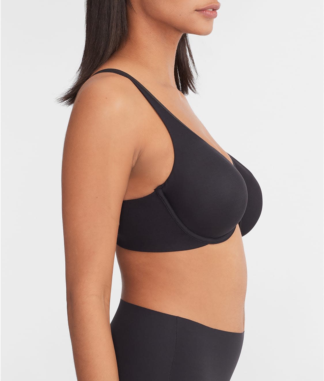 • Full coverage two-ply cups with a bonded, flat neckline