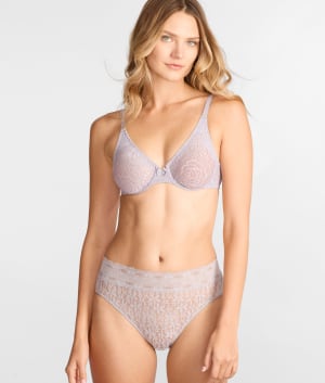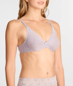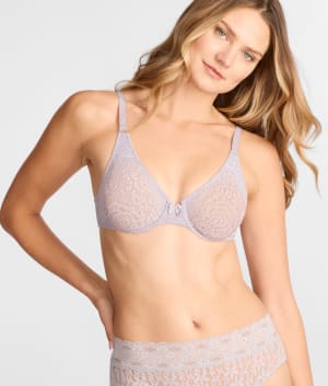 - Versatile, unlined underwire lace bra with J-hook