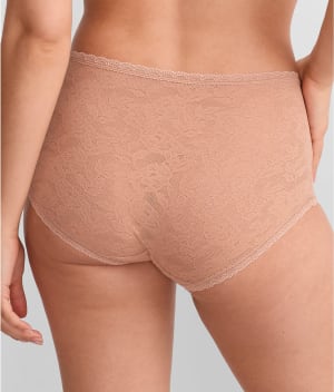 • Modest rise with soft floral lace