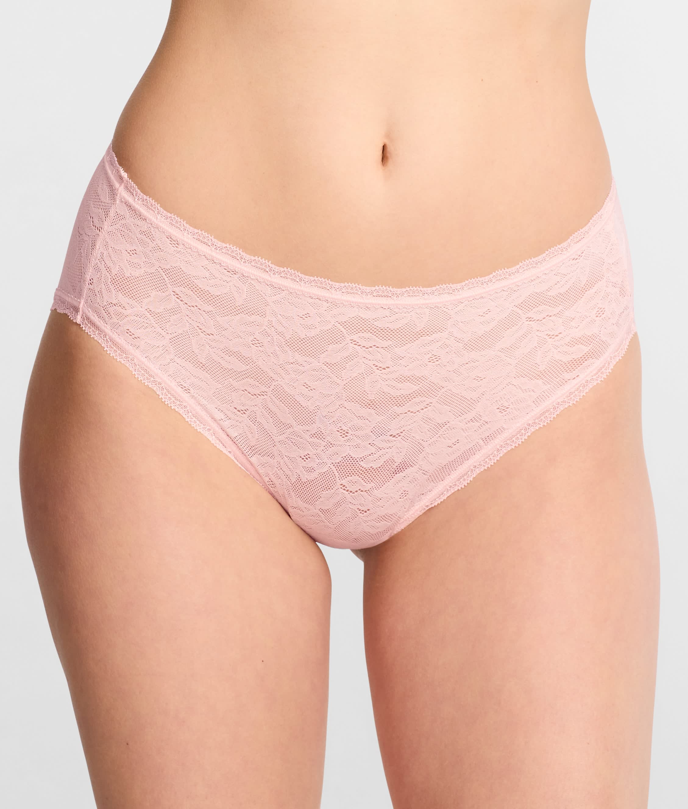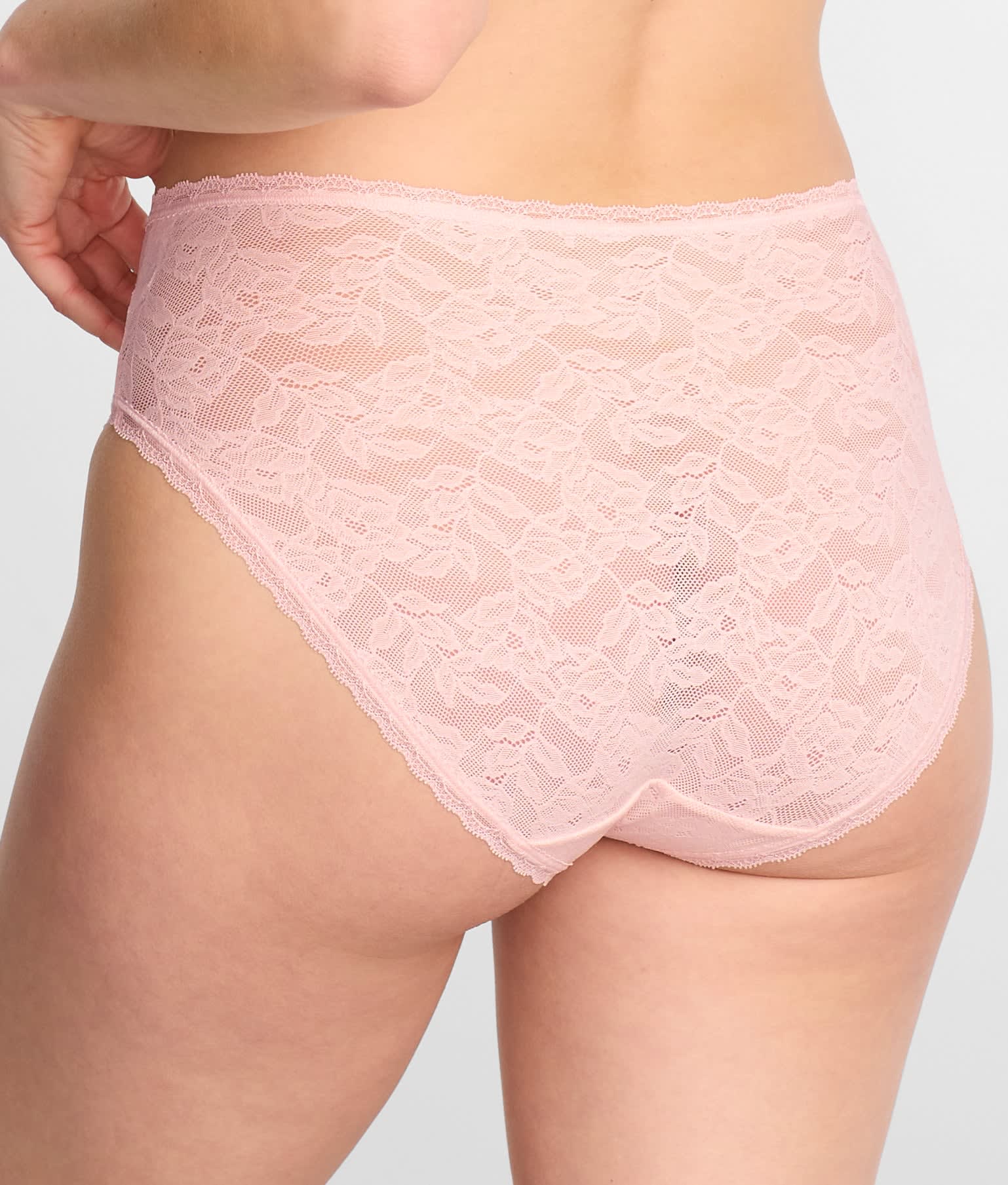 • Modest rise with soft floral lace