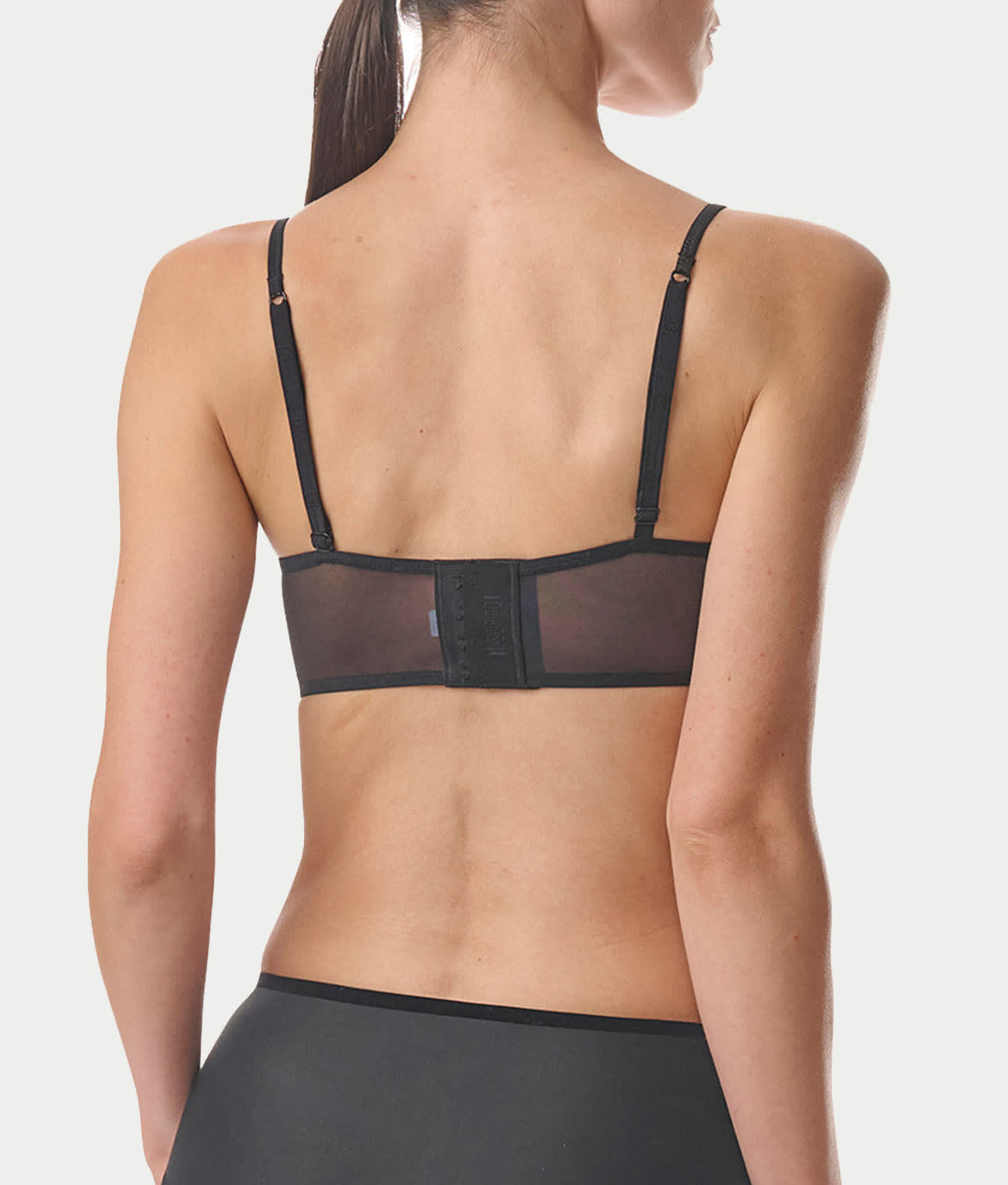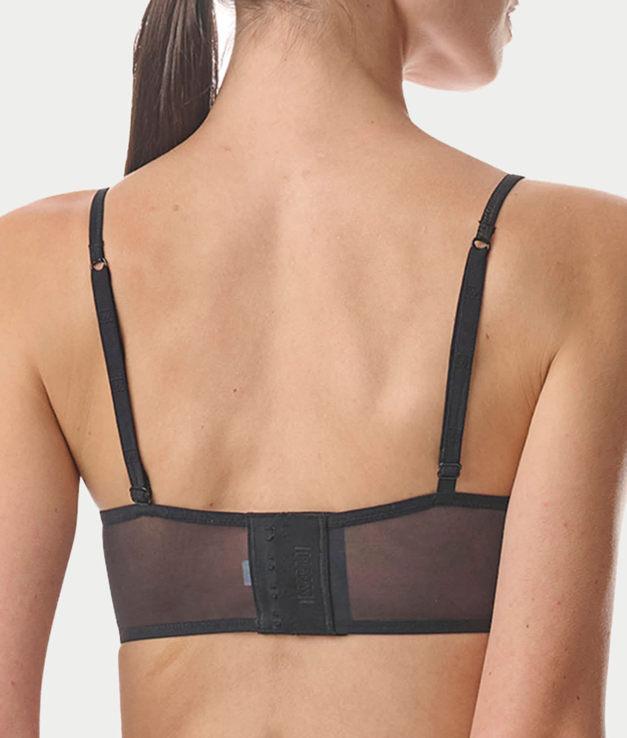 - Mesh back band with 3 column, 3 row hook & eye closure