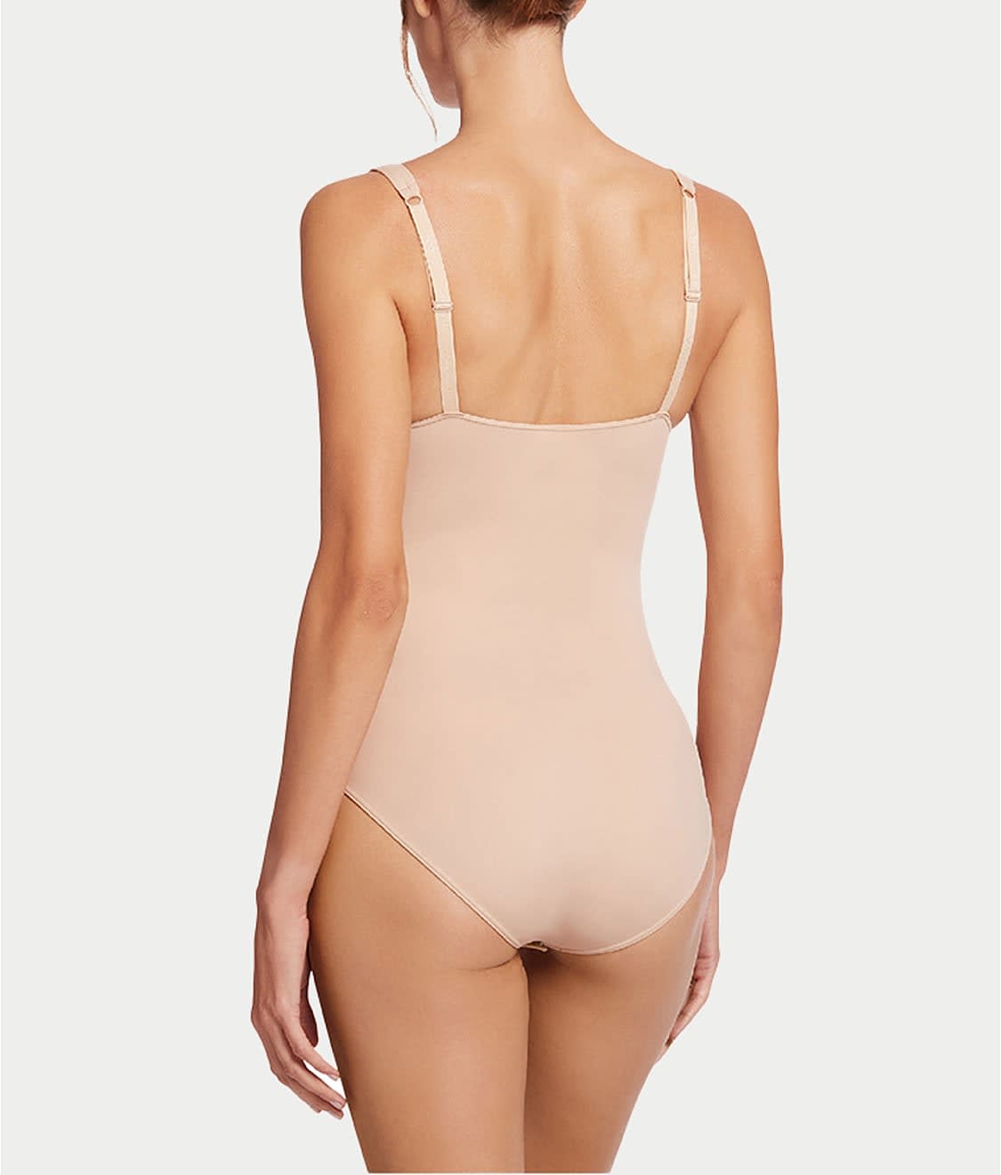 - Seamless bodysuit that sculpts the tummy, waist & hips