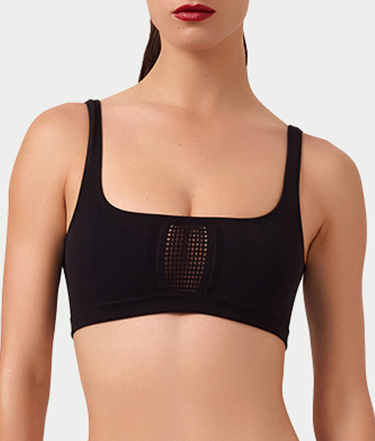 - Scoop neck and back with wire-free cups