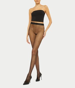 - Recycled econyl yarn net tights with a small fishnet pattern
